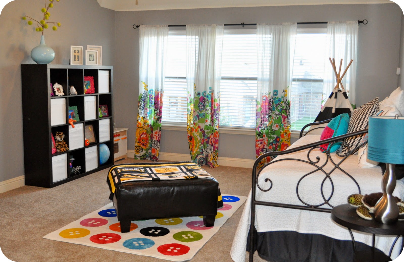 What a precious room! The curtains and teepee are definitely my favorite too. Great job!