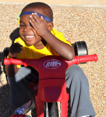 riding her tricycles